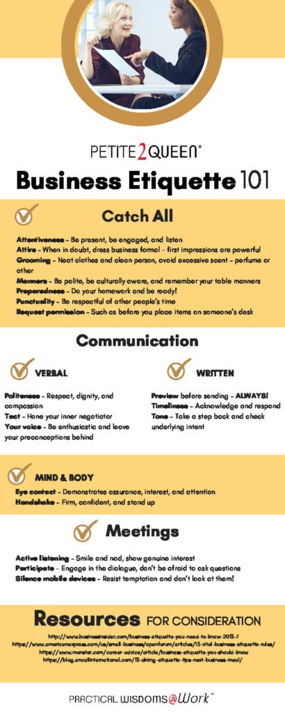 You’ll learn all this and more in our handy business etiquette 101 pdf below. In no time, you’ll be excelling in the workplace. You got this!