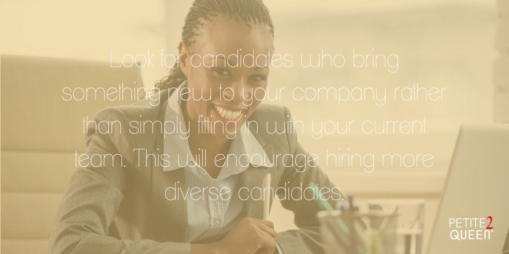 Consider choosing candidates not based on their “culture fit,” but rather on their “culture add.” Look for candidates who bring something new to your company rather than simply fitting in with your current team. This will encourage hiring more diverse candidates.