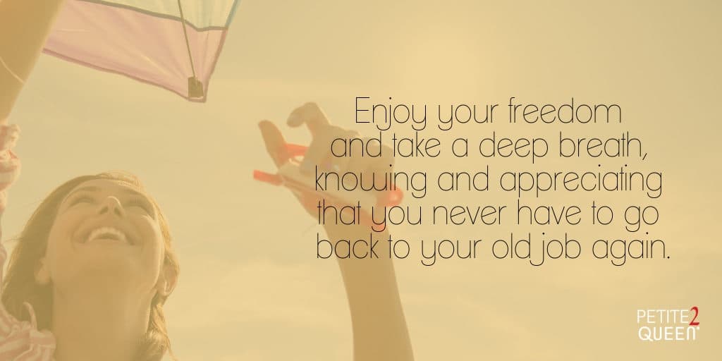 Do what Amy did, and hone skills that are relevant to the job you want. Find or create opportunities to produce work that you can showcase to potential employers. Take the time to enjoy the things and people you love. Enjoy your freedom and take a deep breath, knowing and appreciating that you never have to go back to your old job again.
